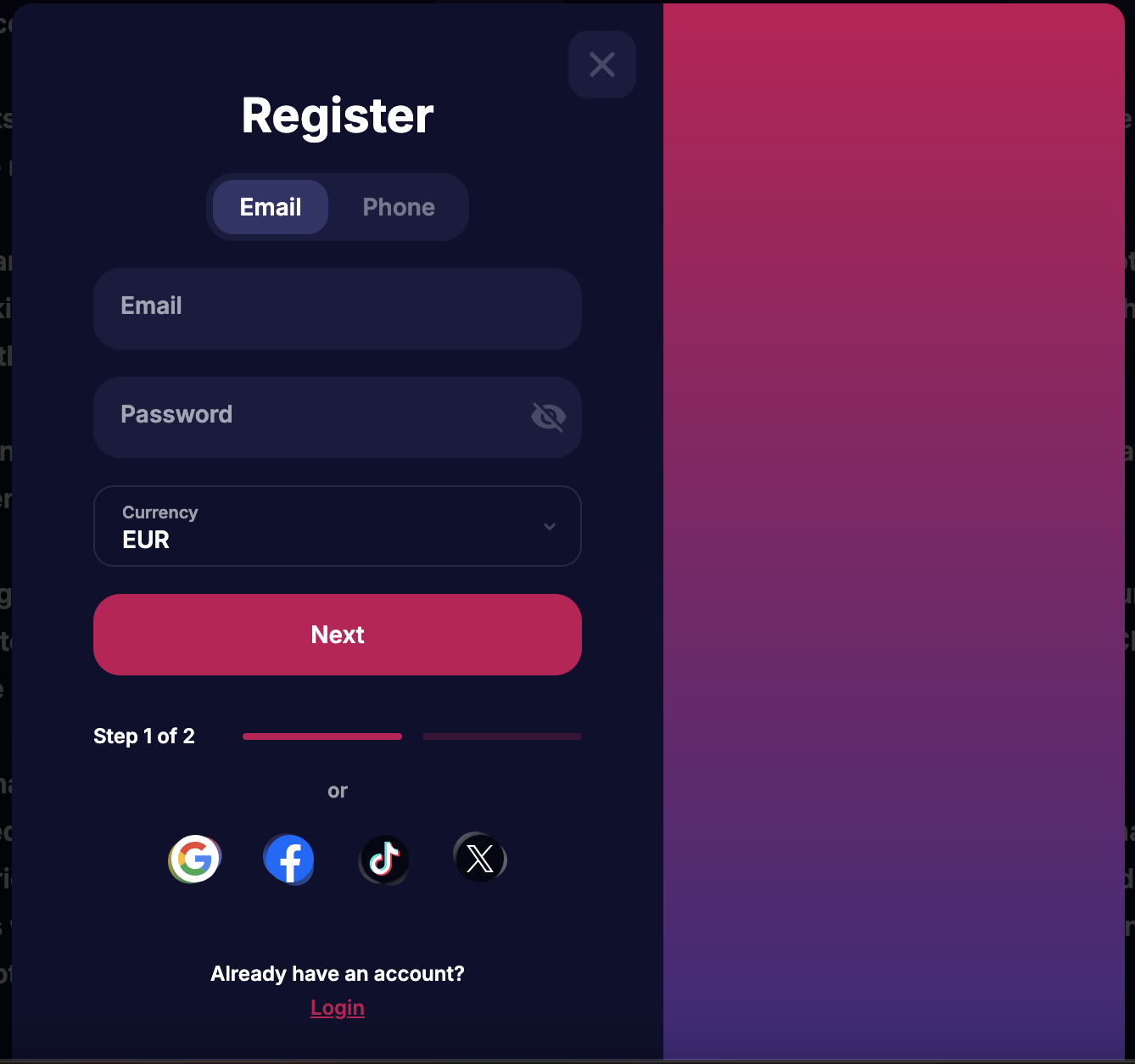 Um ein Konto zu erstellen, müssen Kunden lediglich ihre persönlichen Daten angeben, ihre E-Mail-Adresse bestätigen und eine erste Einzahlung tätigen. Anschließend können sie den Willkommensbonus aktivieren und das System ausprobieren.